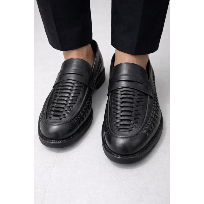 Questi mocassini Penny Intrecciati in pelle nera rappresentano l'equilibrio perfetto tra tradizione e un tocco contemporaneo. Realizzati con maestria in pelle nera di alta qualità, presentano un accattivante design intrecciato sulla tomaia e sui lati, che conferisce una texture unica e una profondità visiva. Il classico dettaglio della fascetta sul collo del piede mantiene l'iconico stile penny loafer, rendendoli un evergreen del guardaroba maschile.
