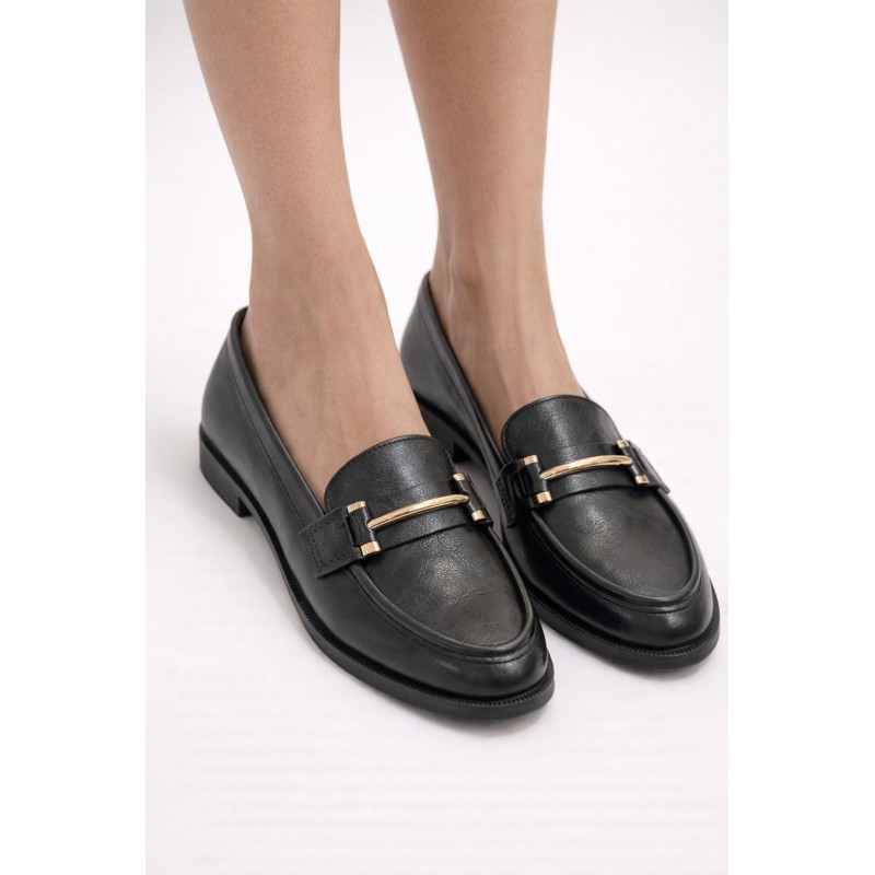Sweet Shoes - Mocassini Neri Classici con Dettaglio Dorato