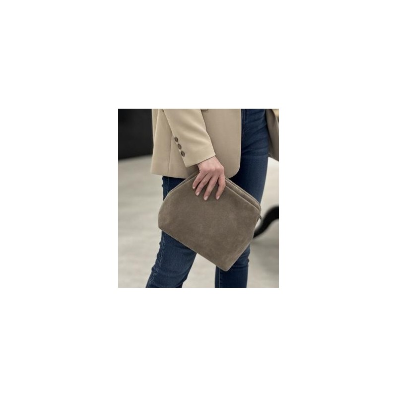 Scopri la perfetta fusione di stile e praticità con questa borsa versatile, ideale per accompagnarti con eleganza in ogni momento della giornata. Confezionata in un lussuoso camoscio effetto suede, offre una texture incredibilmente morbida al tatto e un'estetica raffinata. La sua affascinante tonalità taupe/greige la rende un accessorio camaleontico, facile da abbinare sia ad outfit casual chic che a look più formali.